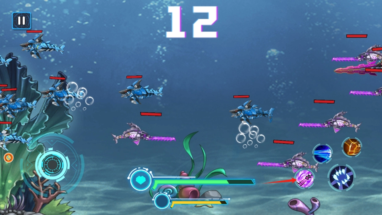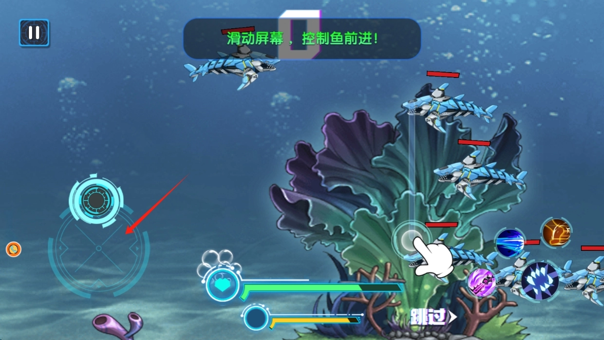 启动游戏后,你可以通过精准挑选吞噬对象来加快成长速度;当连续吞噬都成功时,就能激活“海洋狂潮”的特殊状态;要是需要调整思路或查看指引,还能使用暂停功能。