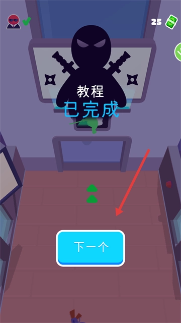 当教程相关的任务都处理完毕,屏幕上显示出“教程已完成”的提示信息后,找到并点击界面上的【下一个】按钮,以此来让游戏的流程继续向前推进。