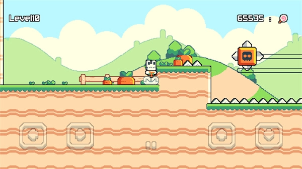 在充满未知的探索过程里,能得到几种实用的助力物品:有一种菌类能让跳跃的高度变得更高,一副特殊的手套可以把四处掉落的胡萝卜吸过来,还有一个沙漏模样的物件能让那些机关暂时停止运作。这些物品和每个关卡里的特殊设计是相互配合的,比如用那个沙漏让转动的齿轮陷阱停住,这样就构成了从寻找物品到思考怎么用,最后成功通过关卡的完整玩法流程。