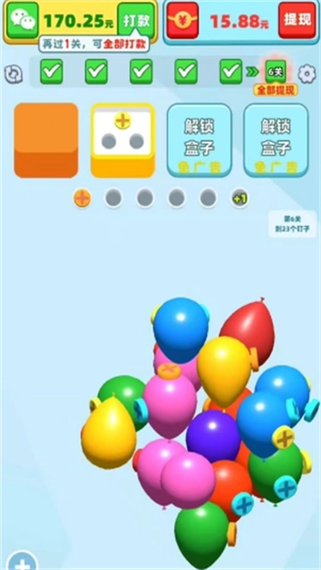 拔不掉我赚钱游戏是一款全新3D风格的趣味拧螺丝小游戏,它的玩法和其他打螺丝类游戏有所不同。在游戏里,你能看到气球上分布着各式各样的螺丝,需要通过左右旋转来定位这些螺丝,再把它们收集到对应颜色的盒子中。只要成功收集完所有螺丝就能通关,通关后还能领取奖励,感兴趣的朋友赶紧来试试吧!