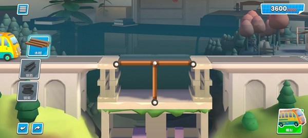 进入游戏如图,玩家需使用木材来建造桥梁;