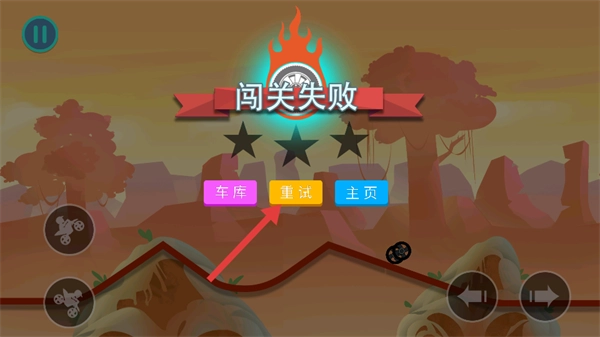 当闯关失败时,点击黄色的【重试】按钮,即可重新挑战当前关卡。