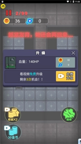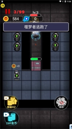然后第一时间把床的每跳收益升级到+32,这时候4个炮塔就完全能守住鬼的攻击了。