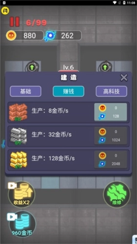 如果局势出现波动,这时可以再补充1-2座炮塔;要是局势保持稳定,就攒钱把防御门升级到钢门5级。