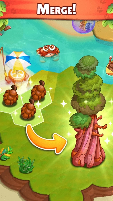 当你把三个及以上的物品进行合并操作时(每多合并一次,你能获得的奖励就会更诱人哦),这些物品就能升级为价值更高的资源或者生物啦!