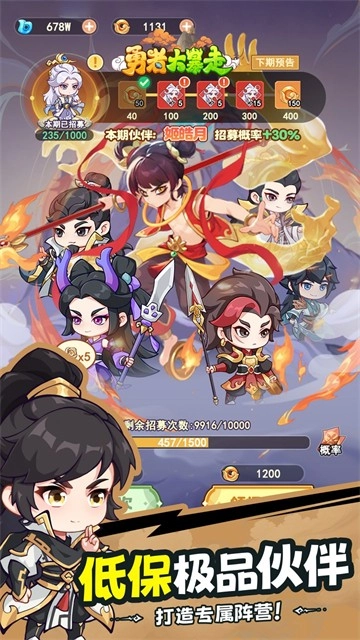 《勇者大暴走》是一款主打修仙题材的卡牌冒险游戏。在游戏里,玩家将踏入破碎后重新整合的洪荒世界,开启修仙养成与冒险战斗之旅——你可以和化为人形的上古神兽、觉醒了器灵的洪荒至宝并肩作战;只需通过简单的召唤操作,就能获取形形色色的英雄角色,组建起强大的作战小队。哪怕只维持基础的战力养成,也足以完美应对所有挑战,面对复杂的主线关卡和任务时能轻松解决,完全不用耗费太多精力去规划安排。而合理分配利用法宝装备,不仅能形成强力套装带来属性加成,还有机会触发特殊的技能增益效果,以此实现全方位的基础战力强化,足以应对更多强大首领。