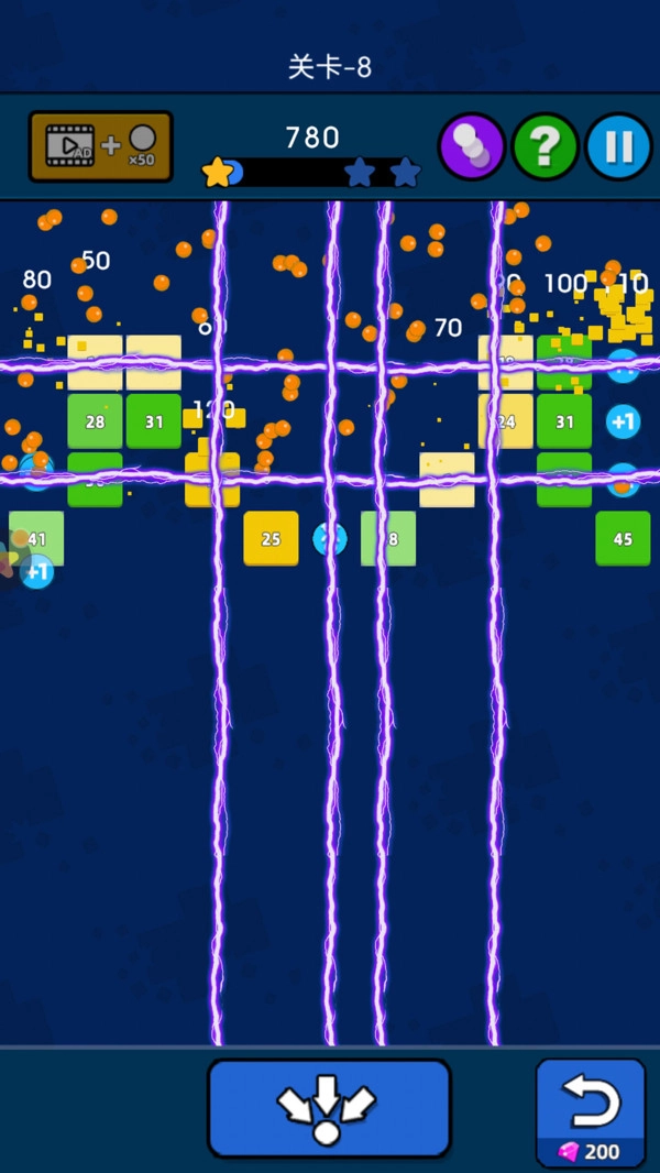 在游戏过程中,你能够自由设定弹珠的总数,还能操控弹珠的移动轨迹,以此触发对方块的攻击机制,最终达成消除方块的目标。