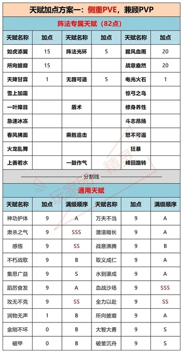 当前版本的天赋没有特别的变动,总体而言,通用天赋在PVE和伤免流PVP中依然十分关键。
