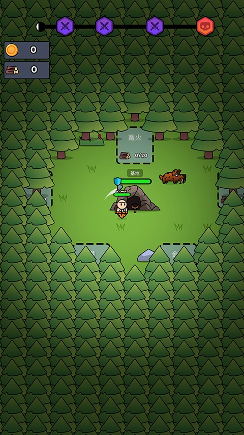 在一片广袤的林地中,你需要操控角色四处探索,通过砍伐树木、挖掘矿石来积累基础材料。这些材料可以用来搭建储物空间、防御性建筑等设施,而在发展初期,最重要的是先建立起能抵御危险的防护工事。