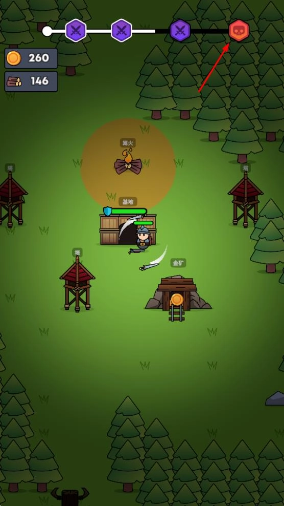 在游戏进行时,能够通过金矿来获取更多的金币,还可以依靠基地、塔楼这类建筑来帮助冒险,朝着上方的进度目标不断前进。