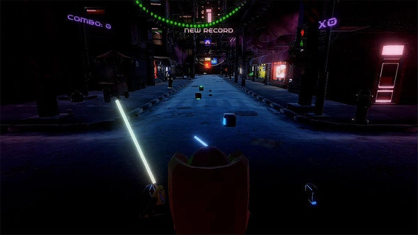 切割方块:跟着音乐的节拍,屏幕里会有方块飞过来,玩家得用光剑把它们切开。