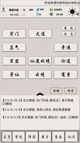 有一款国风修仙题材的角色扮演游戏,其核心玩法围绕文字展开。它打造了一个宏大的世界,其中融合了东方修仙文化与神话元素。玩家将化身为一名刚踏入修仙领域的侠客,在持续的修炼与历练中,一步步成长为声名远扬的宗师级人物。该游戏以创建宗门为核心主题,玩家能够广泛招募门徒、壮大自身势力,在辽阔的虚拟天地里建立起属于自己的修仙门派。