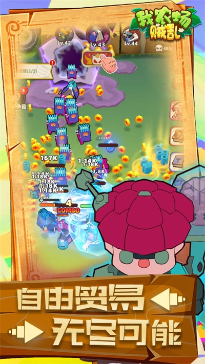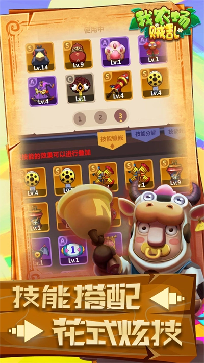 可以自定义装扮皮肤,还能搭配各类道具与技能,轻松横扫农场,只需动动手指就能击败所有对手。