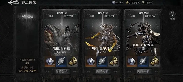 神之挑战的规则是采用固定配置挑战指定敌人,每个赛季结束会依据通关时间发放排名奖励,该玩法在通关真骸1-2后解锁。关卡内所有玩家的配置完全一致,是纯粹考验操作技术的模式,建议每期都尝试挑战速通。神之挑战每期设有三关,总体排名奖励包含较多魂石,还能获得可在个人界面展示的实力证明奖杯。