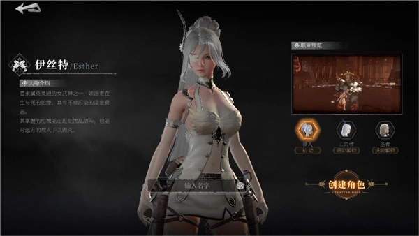 在游戏里,作为英灵殿的女武神之一,她徘徊于生死界限之间,拥有着不受污染的坚定意志。而这个角色和另外两个角色最显著的不同点在于,她是唯一的远程职业角色——毕竟三个初始职业角色中,一个是玩近战太刀的海拉,另一个是隔壁玩斧子的狂战大哥,要是想玩远程的话,那就只能选伊丝特了。