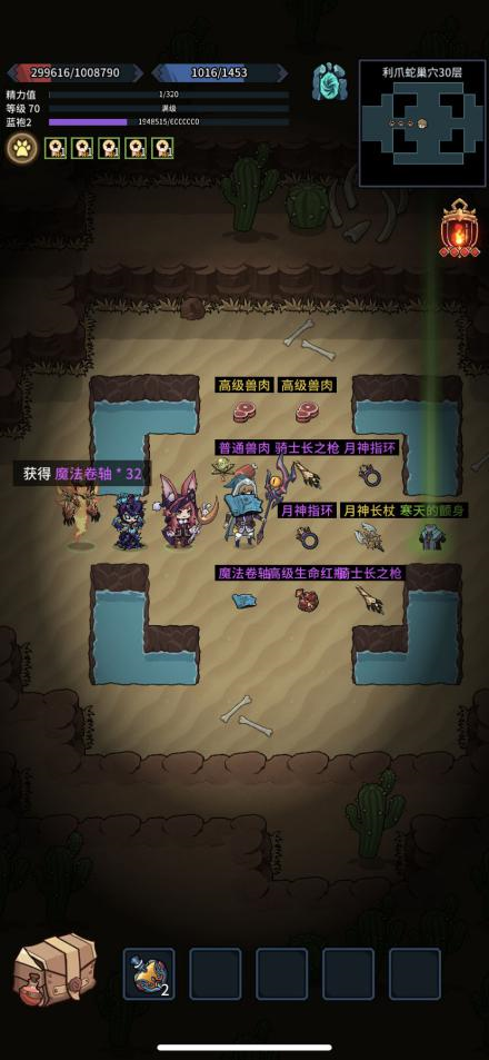游戏过程中会触发各类随机事件:比如进入下一层地下城时,系统会判定必定掉落金色品质的武器——这对热衷于刷取装备的玩家而言,无疑是值得期待的利好;此外还可能遭遇神秘洞窟,踏入其中后,既有机会收获珍稀道具,也可能直面一群实力强劲的敌人。