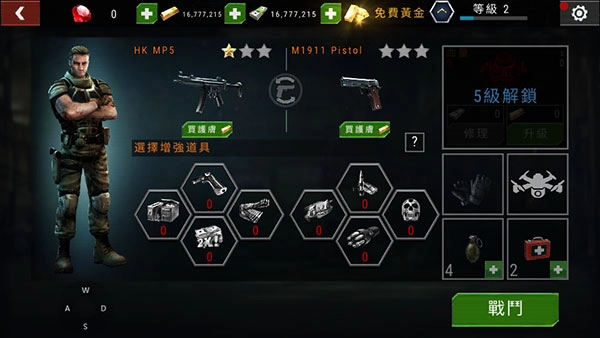 所有准备工作完成后,点击“战斗”按钮就能正式进入战斗环节,依靠熟练的操作技巧将所有丧尸逐个消灭。
