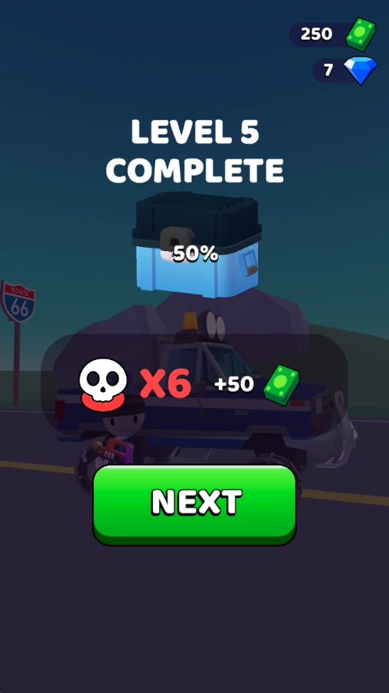 超过80个战略射击关卡,需要您根据车辆类型和乘客人数计算子弹数量并规划射击。完成关卡即可赚取现金和水晶,用于升级您的卡车、枪支和角色。