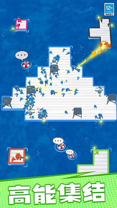 游戏前方高能预警,玩家依靠策略排兵布阵,迅速展开射击,击溃敌人。