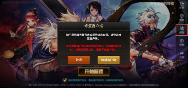 你可以尝试点击游戏登录页面右上角的修复按钮,选择修复客户端,完成后重启游戏。