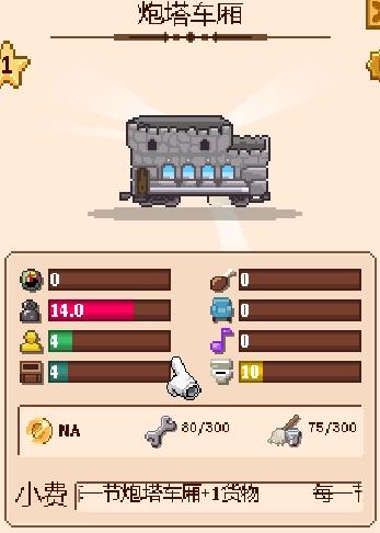 车厢的属性依次为:从左上角往下数,分别是提升速度、重量、载客人数、货物承载量、右侧的食物供给、乘坐舒适度、娱乐功能以及设施配备(比如厕所)。魔方车厢的核心用途是提供娱乐,同时还兼具运送旅客和搭载食物的功能,堪称一款全能型车厢。
