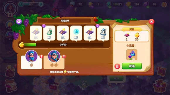 合出对应的物品后,点击左下方的背包就能完成订单任务,完成订单可获得魔法棒。