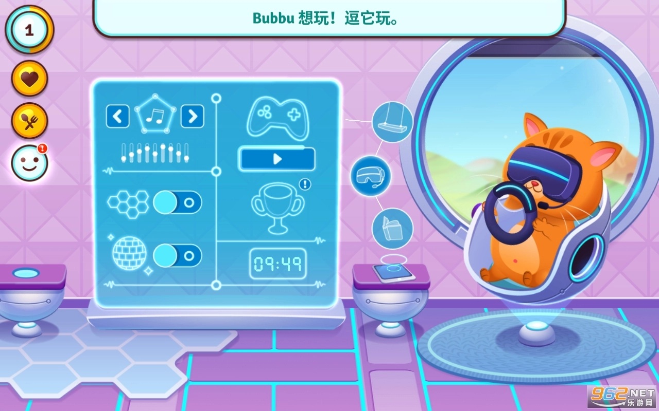 成为火星上的第一只小猫咪,实在是既刺激又有趣!深入探索红色星球的奇妙秘密,让Bubbu的世界变得丰富多彩且充满神奇色彩!这里有白天与黑夜交替,雨水和阳光降临,甚至还能创造出美丽的彩虹。你可以看着Bubbu飞越王国,游览城市,跳进湖中嬉戏,玩迷你游戏,和新朋友一起度过欢乐的时光。这是母鸡Cocco和Mimmi的全息影像,它们都为Bubbu的生活增添了几分甜蜜的气息。