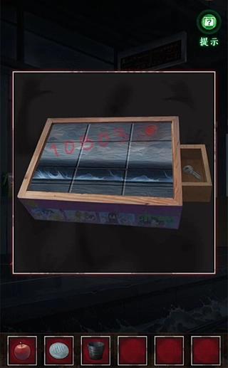 玩家们可以获取黑蜡笔与空水桶,返回候车厅后,在拼图上把海浪涂成黑色,再将月亮涂成红色,这样就能拿到钥匙了。