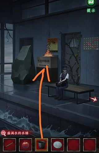 回到站台,把空桶装满水,接着对照笔记本里的记录,用火柴去点燃桶,之后再使用玩家们在电车里得到的苹果。