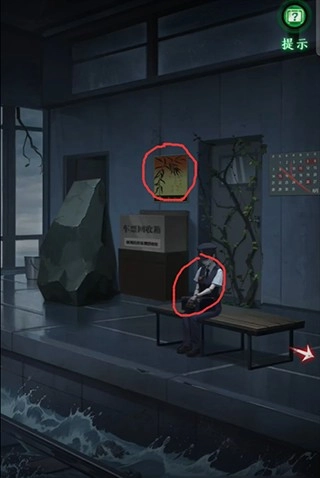 点击书柜最上层露出的纸张,就能获取“蝉能让石碎”的信息,接着把刚得到的手臂安放到候车室的人偶身上。