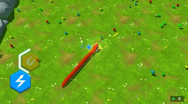 进入场景后,滑动屏幕就能操控贪吃蛇移动,吃掉场景里的食物让它变长。