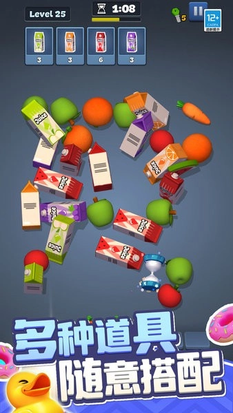 游戏设计了多样趣味关卡,玩家需依据目标物品开展消除操作。不断挑战自身极限,把所有目标物品都消除完毕,就能顺利通关。