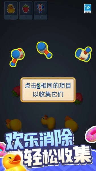 寻找场景中的相同物品,搜集三个即可进行消除。