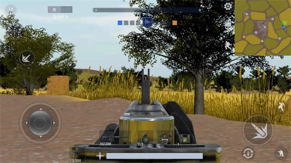 进入游戏后,我们的目标是占领据点,下方的虚拟按键可供玩家操控角色进行移动和射击。