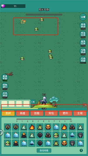 游戏前期角色输出节奏较慢,这时候可以手动进行消除操作,让圣树完成充能,以此辅助打怪;玩家只需消除两个相同的圣树就能实现充能,要是叠加“自动充能”效果,刷钱和刷图的效率会特别高。