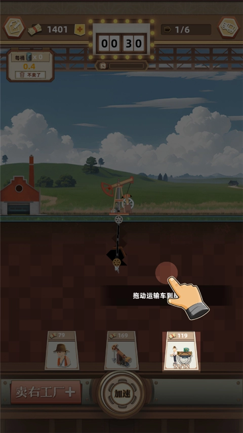 当车队装载好石油后,需要将其运输到工厂进行出售才能获取金钱收入,我们点击右侧的工厂即可完成售卖操作。
