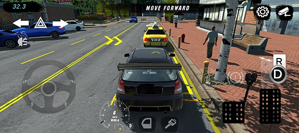 驾驶操作方面,玩家需要完成倒车、并线、泊车等多种不同的驾驶动作,这些操作十分考验玩家的反应速度与手眼协调能力,玩家可以自由地进行驾驶体验。