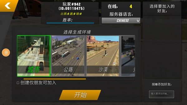 找到一张地图并点击【开始】进入游戏,好友只需在右侧找到你的ID并点击名字,就能直接进入游戏和你一起联机游玩啦!