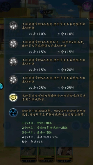 队伍这边新增了宇智波融与宇智波佐助这对拥有血轮眼羁绊的成员,他们可以为战场上的队伍提供额外的战力加成。