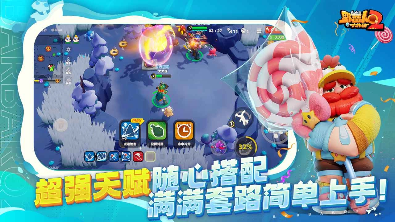 《野蛮人大作战2》是一款极具趣味性的动作射击游戏,其画面制作精良,角色动作流畅爽快。在游戏里,玩家能与众多其他玩家组队闯关、并肩作战,尽情享受射击带来的刺激快感。这款游戏的整体节奏十分明快,一局游戏大约五分钟就能结束,让玩家在轻松休闲的氛围中收获乐趣。此外,游戏中的战斗地图、关卡设置乃至技能组合都充满随机性,为玩家带来了强烈的期待感与新鲜感,完全不会让人觉得枯燥乏味,赶紧来体验一下吧!