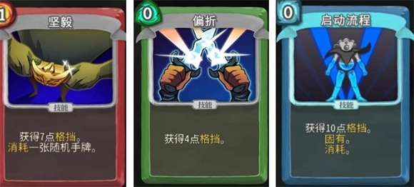 游戏内存在三类卡牌,分别是攻击牌、技能牌与能力牌,它们所需消耗的费用区间为0至5费。攻击牌以红色作为主要背景色,图案设计偏向进攻属性,是多数情况下的核心伤害输出来源。技能牌的背景主色调为蓝色,图案侧重功能性表现,具备一定的防御手段,但并非应对防御需求的唯一方式,而且每个职业都拥有符合自身专属机制、风格各异的技能牌。能力牌的背景颜色没有固定标准,其图案更多地体现角色自身的特性,能够增强角色的综合战斗能力,其中部分能力牌还带有较强的防御效果。