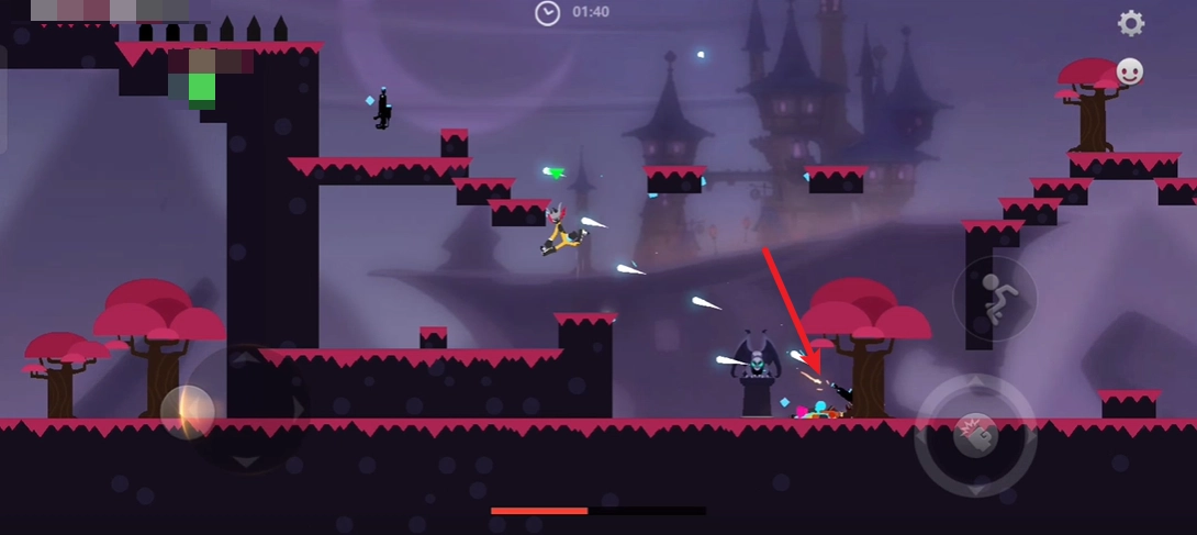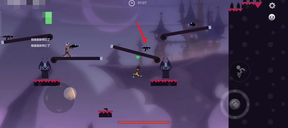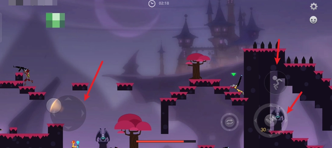 进入游戏后,我们用左边的摇杆来操控角色移动,右边的按钮一个是攻击键,另一个是跳跃键。