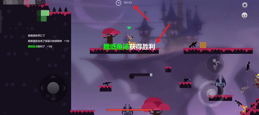 每一局游戏都设有时间限制,当玩家击杀所有对手,或是时间耗尽时,游戏便会结束。