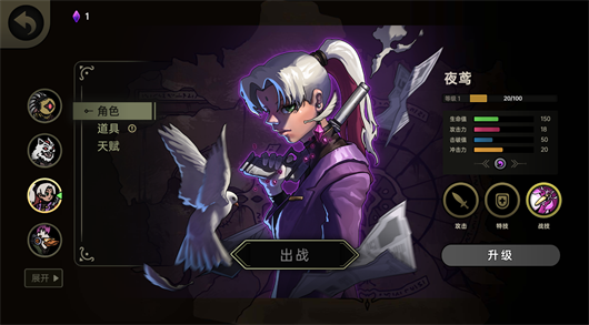 夜莺:战斗时会施展“天女散花”的招式,在向后撤退的同时连续发射魔法子弹,总计造成相当于自身攻击力150%的6倍魔法伤害。她的专属道具是爆能手枪,该道具能让暴击率加成的效果提升50%,但会使攻速加成的效果降低50%。