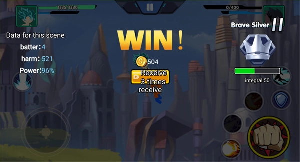 把对方的血量打到零就能赢得胜利,赢了之后会得到金币奖励。