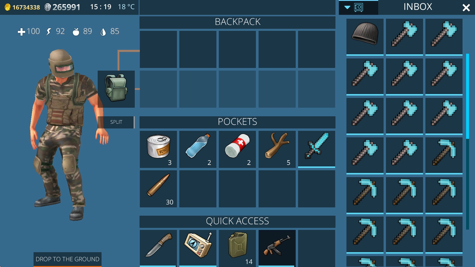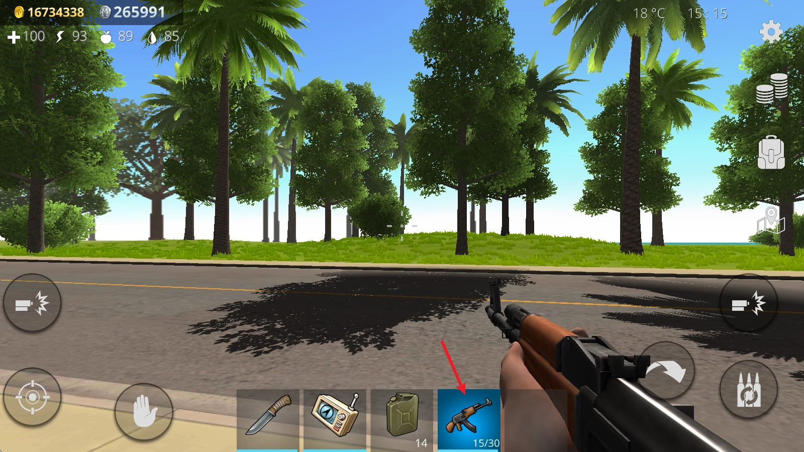 点击下方的快捷栏,我们就能快速切换工具,甚至武器。