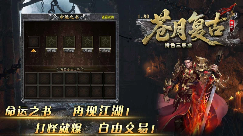 苍月复古三职业,180火龙三职业微变复古版本,血量破万的小怪就能掉落所有终极装备,这是一个充满追梦氛围的生态大服!海量专属地图等待你的探索,还有不少隐藏BOSS等你来挑战,各类极品装备都有机会收入囊中,快来试试自己是不是欧气满满的幸运儿!本服装备全凭努力获取,投入时间就能拉近与土豪玩家的距离,每个人都有追梦的机会,散人玩家也能逆袭成为大佬!