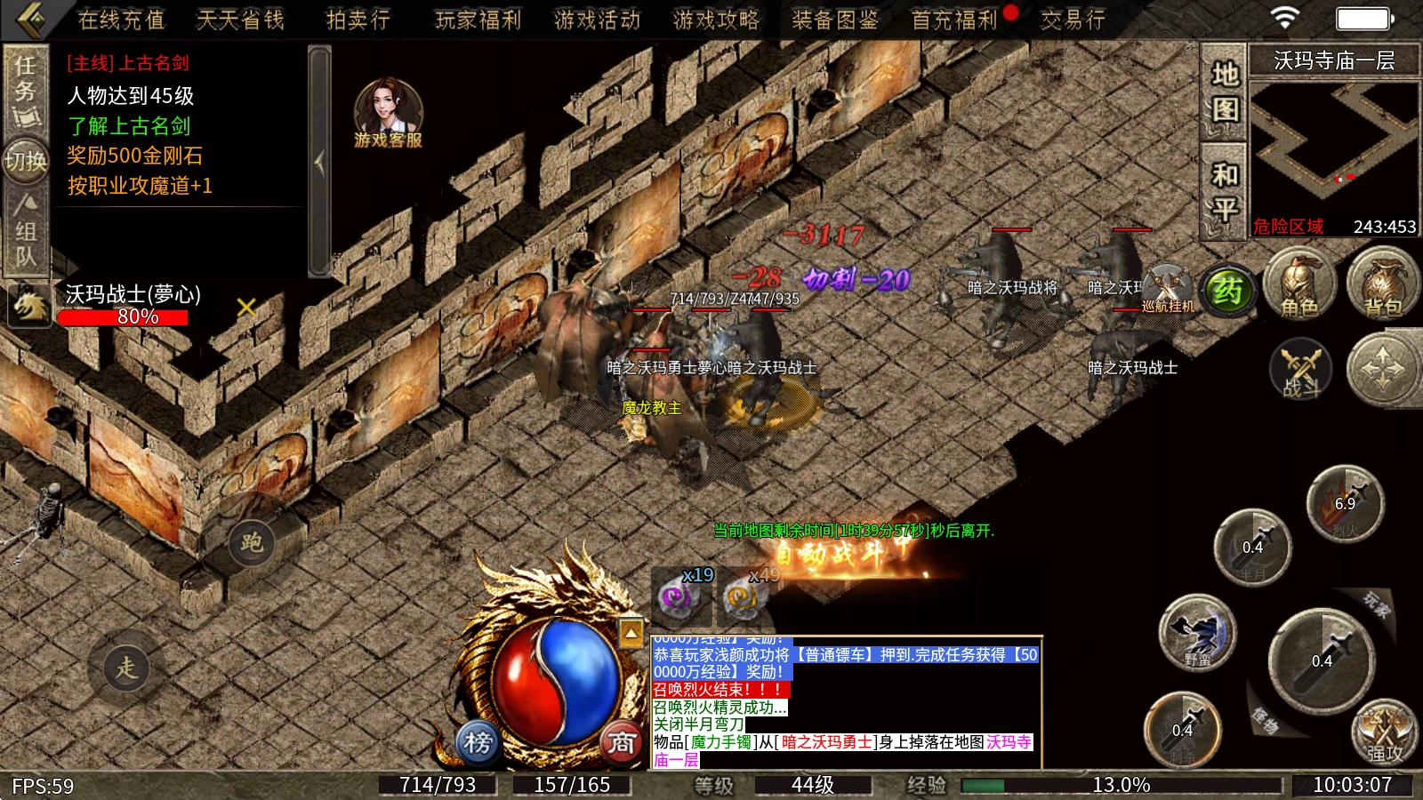 优势:上手速度快,流星火雨、移动火墙这两个技能在PK对决和刷怪升级时都具备显著优势。