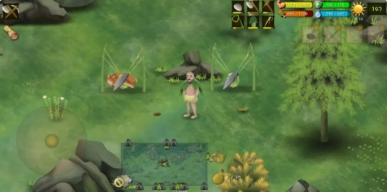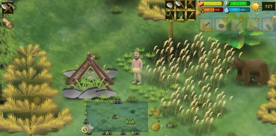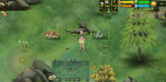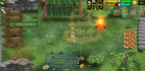 配备石头、竹叉、弓箭这类投掷工具,不同猎物得用对应的工具来猎杀。像草原上的兔子、池塘里的鱼之类,考验的是瞄准的技巧和工具的选择。