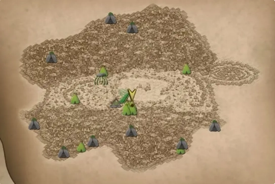 营地的分布情况是:一处在竹林附近,另外还有两处位于北面湿地的两个入口处。主基地设立在湖的南面(需要说明的是,除了主基地之外,其他营地的功能主要是供人过夜休息和躲避风雨)。